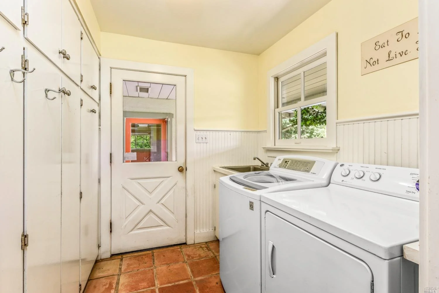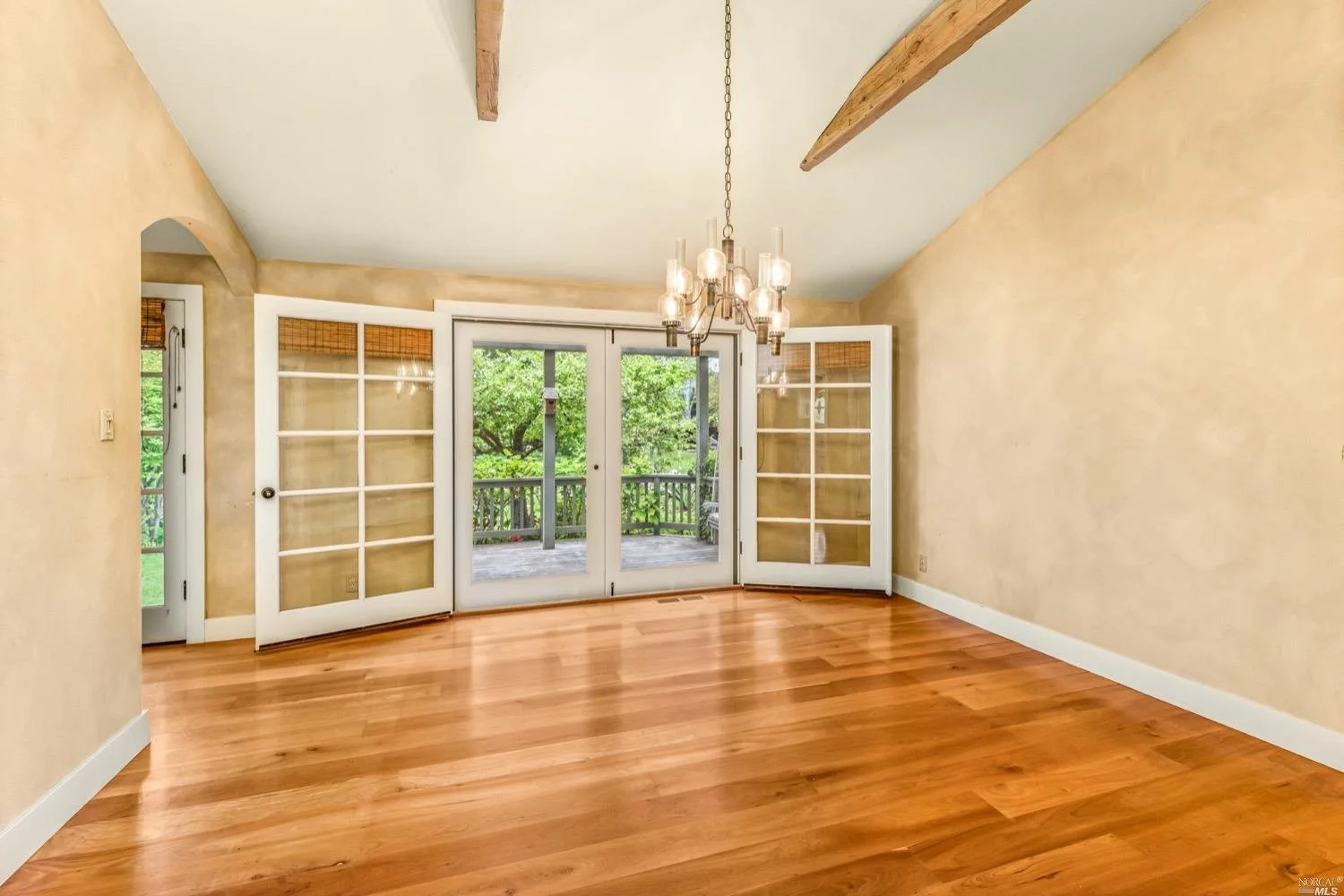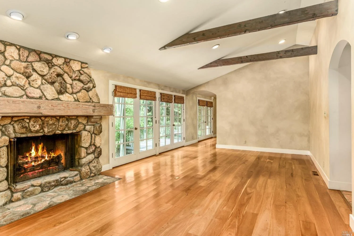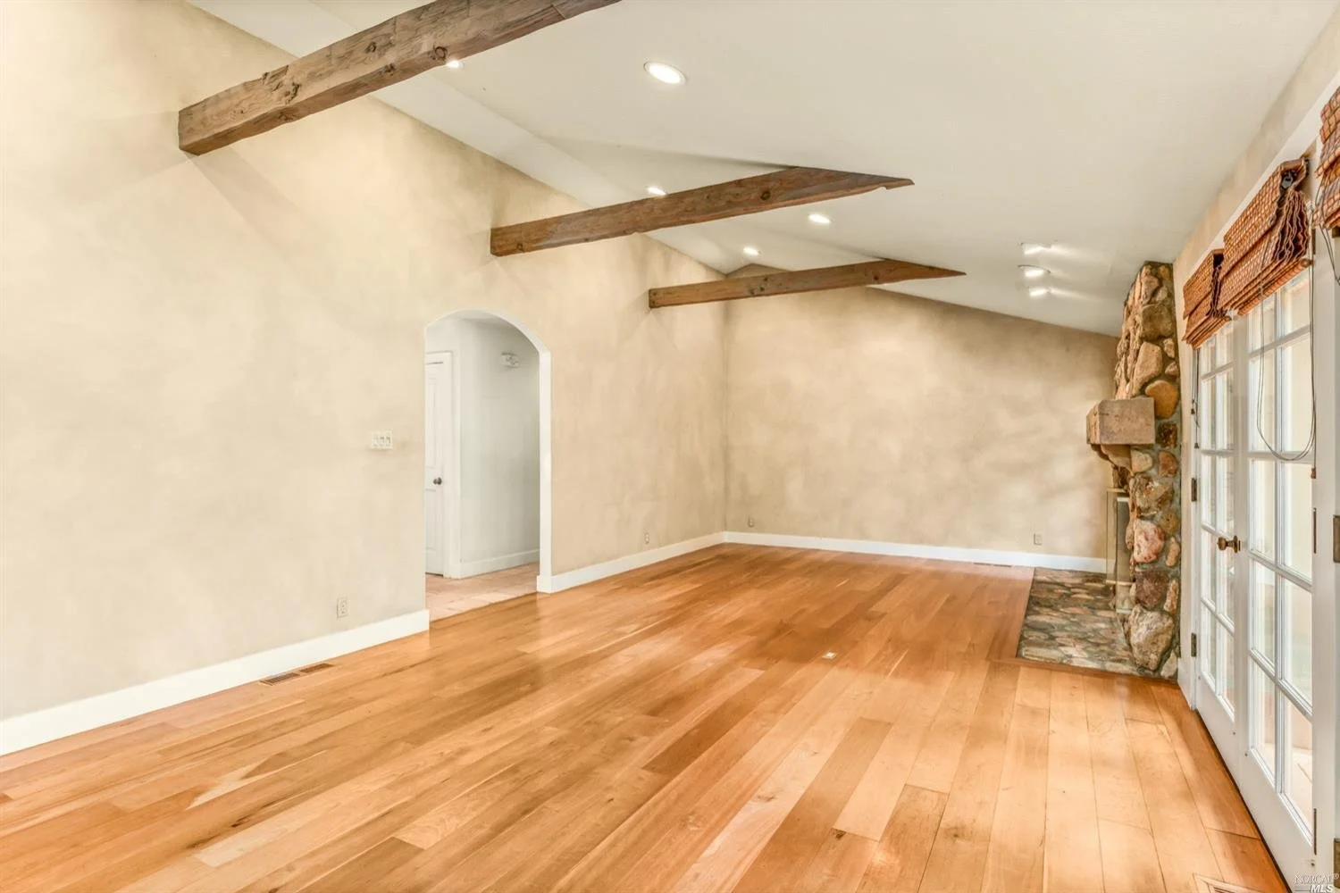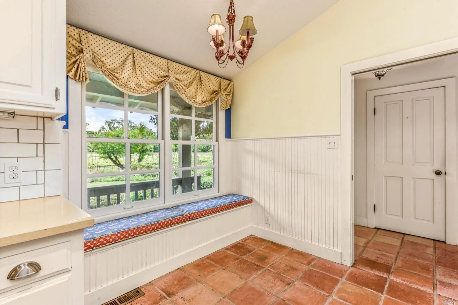 This is the Napa Valley setting you've been waiting for. Located on a private 4.7+/- level, usable acres, this desirable flag lot with paved access and circular drive has a charming 2,394+/- sqft 4 bedroom, 2 bath single-level home with endless possibilities. Vaulted ceilings with exposed beams and French doors give a sense of space. Living room with lovely stone fireplace with adjoining formal dining room adds charm to this unique offering. Well-equipped galley kitchen with window seat looking out to covered front porch, lush landscape, and adjacent vineyards.