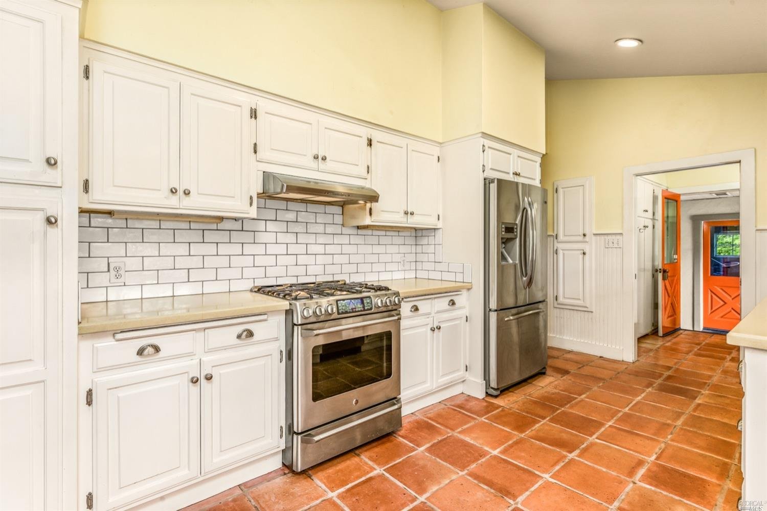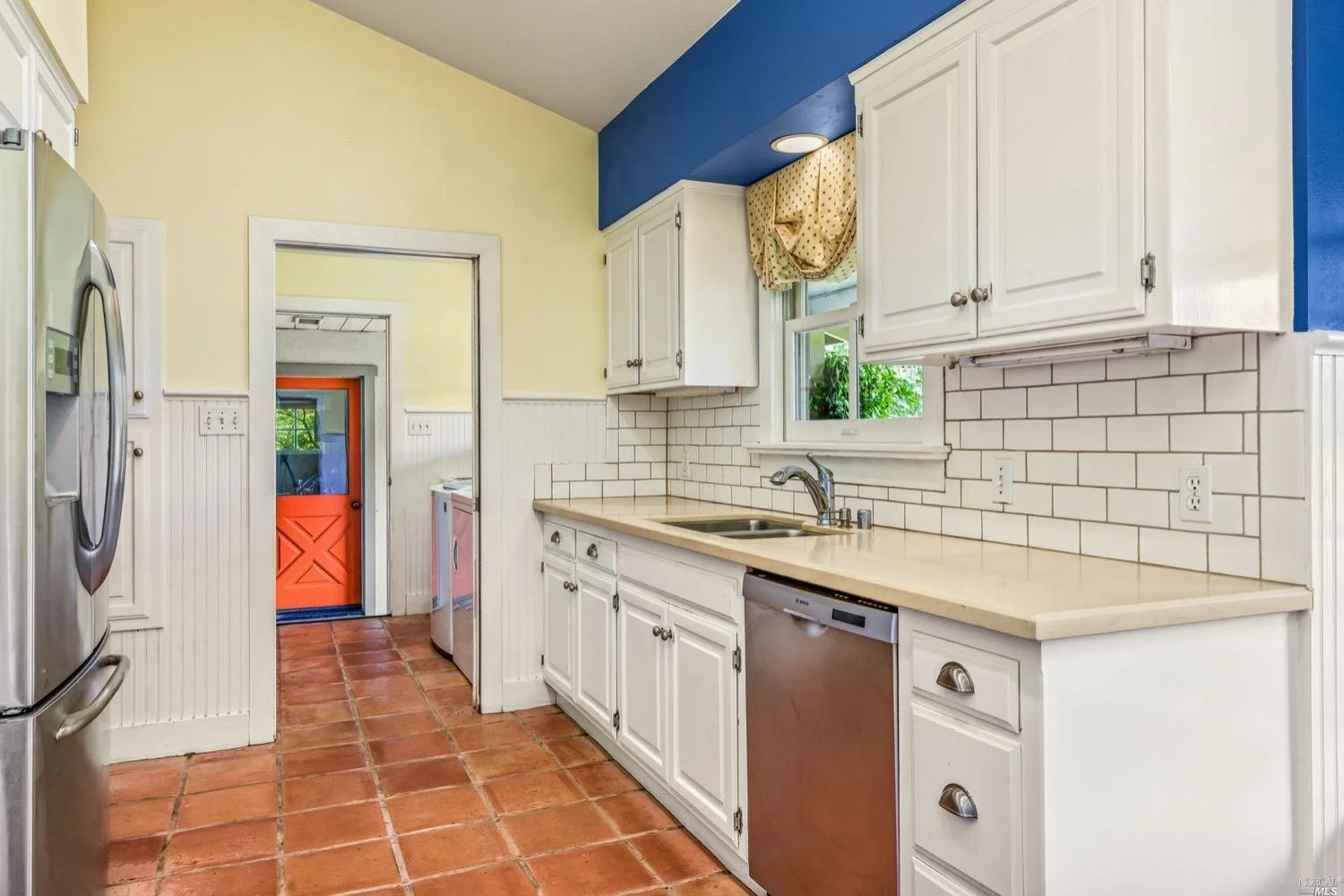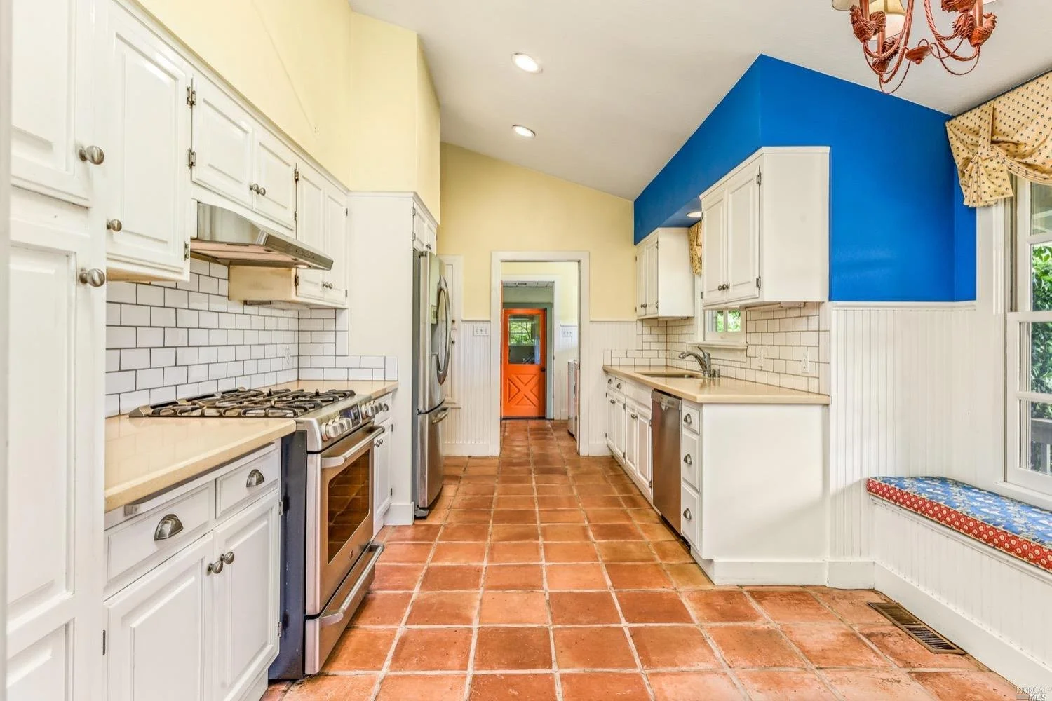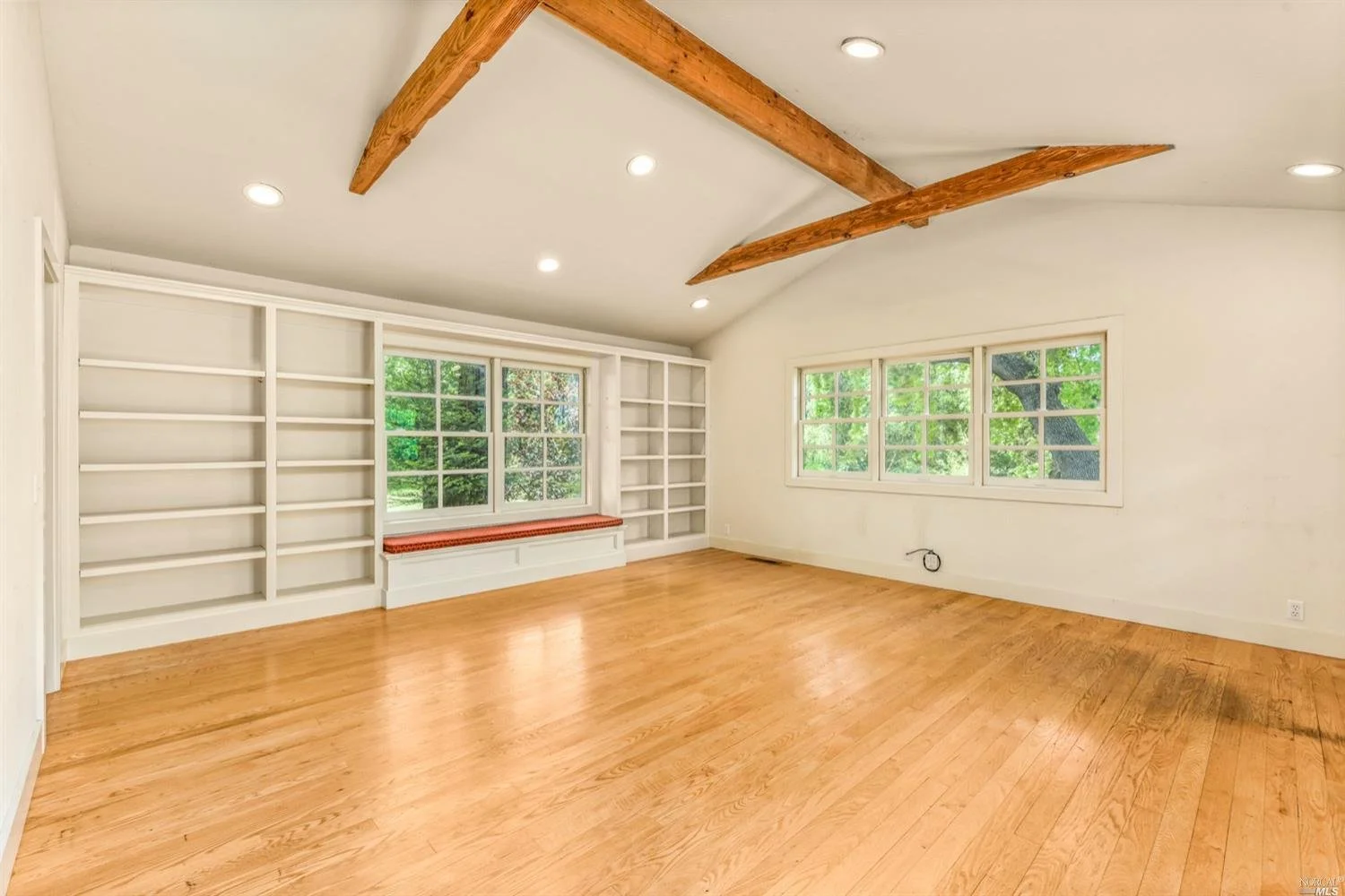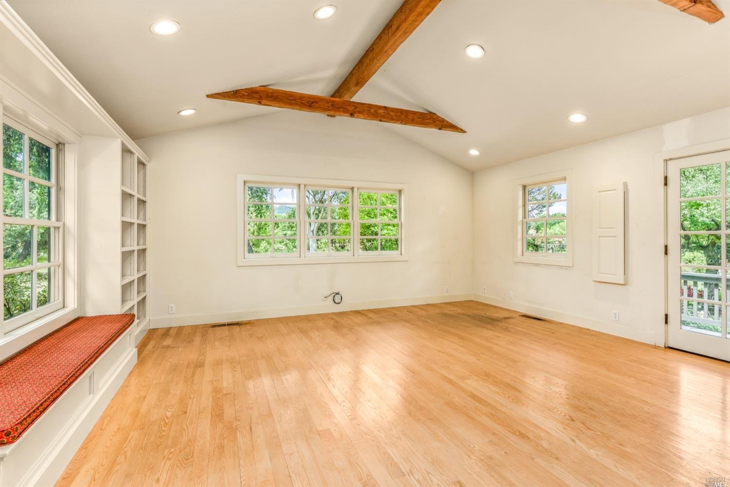 There are three guest bedrooms and a fourth oversized bedroom with vaulted ceilings, views of grounds which lends itself to a possible art studio, home office, or master suite. There are two full baths as well as an indoor laundry room. rear deck area is great for entertaining and has views of the lush rear garden with extensive plantings and mature trees. There is a covered attached breezeway with access to oversized two car garage. Seasonal creek borders the rear of the property. Central heat/air. Minutes to downtown Napa, Yountville and more.