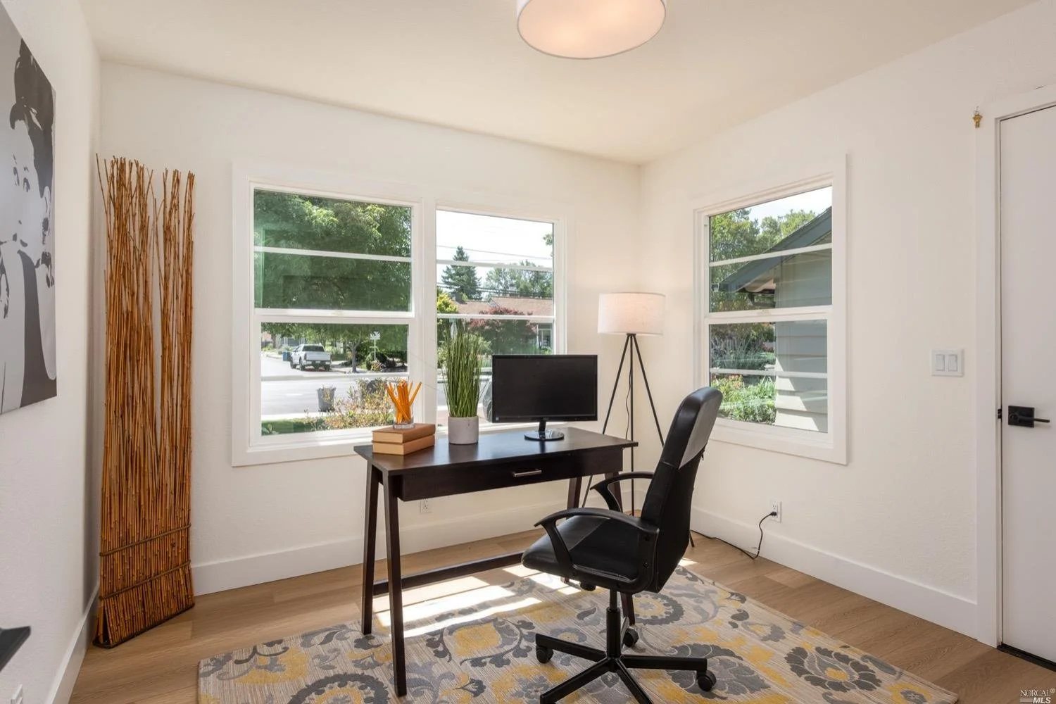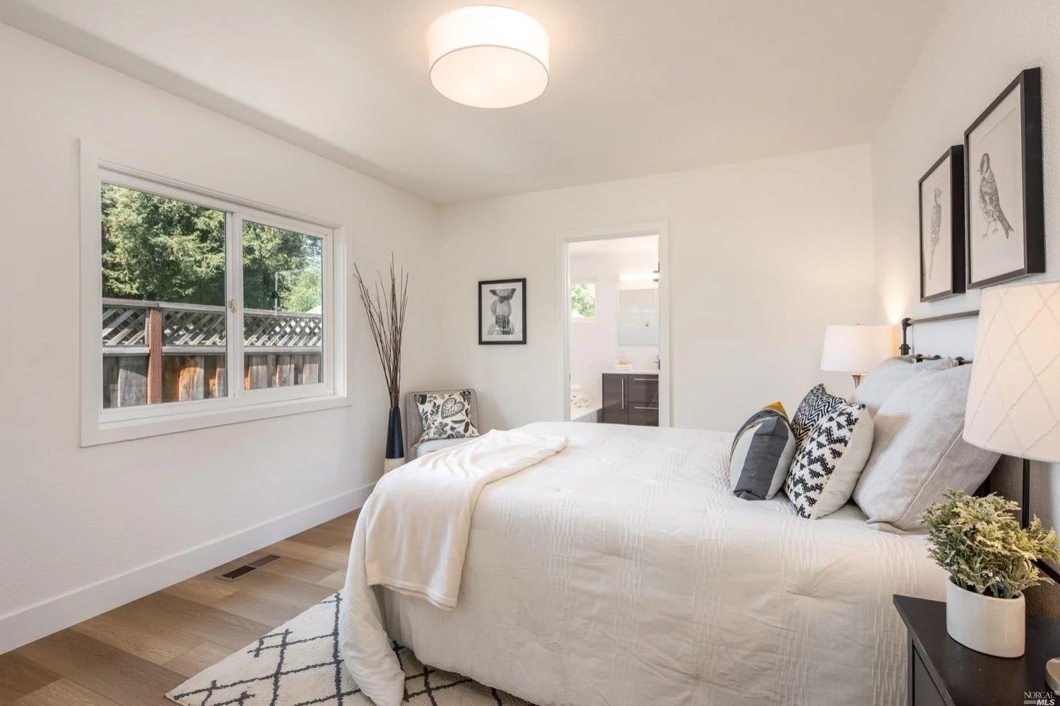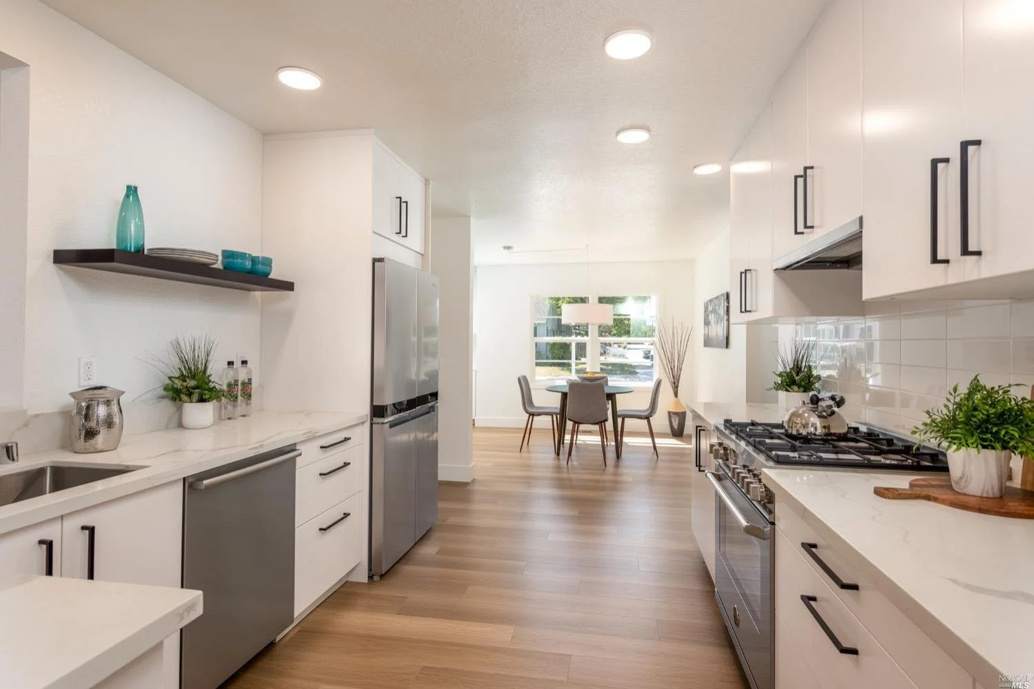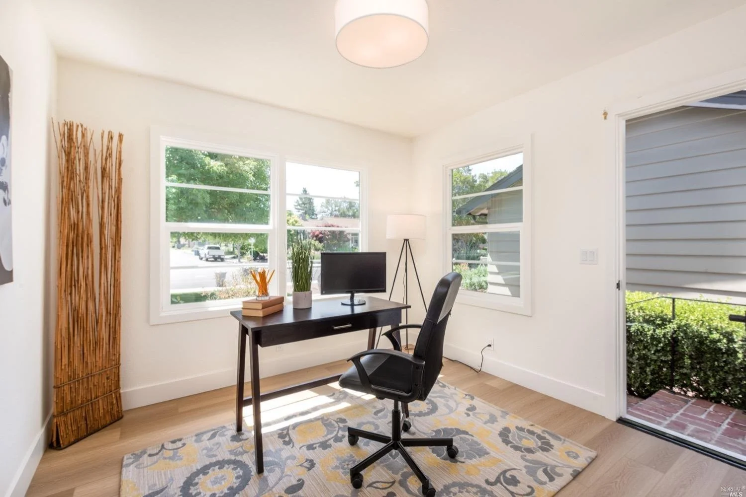 Rare opportunity for stunning, newly remodeled single level home in highly sought-after Proctor Terrace neighborhood. Custom upgrades throughout. Short walk to shops and restaurants with a wonderful school district. Open floor plan with designer kitchen, dining, and large family room with access to spacious private yard with patio are perfect for entertaining. Lovely kitchen boasts quartz countertops, stainless steel appliances, and gas range, with adjacent dining area, built-in cabinetry and pantry/laundry room. Primary bedroom features en suite bath with two sinks, walk-in closet, custom tile, heated floor, and large shower. Additional guest bedroom with en suite bath, heated floor, and shower over tub. Third bedroom/office with exterior entry and convenient separate full guest bath at hall. Attached two car garage with bonus storage closet and more.