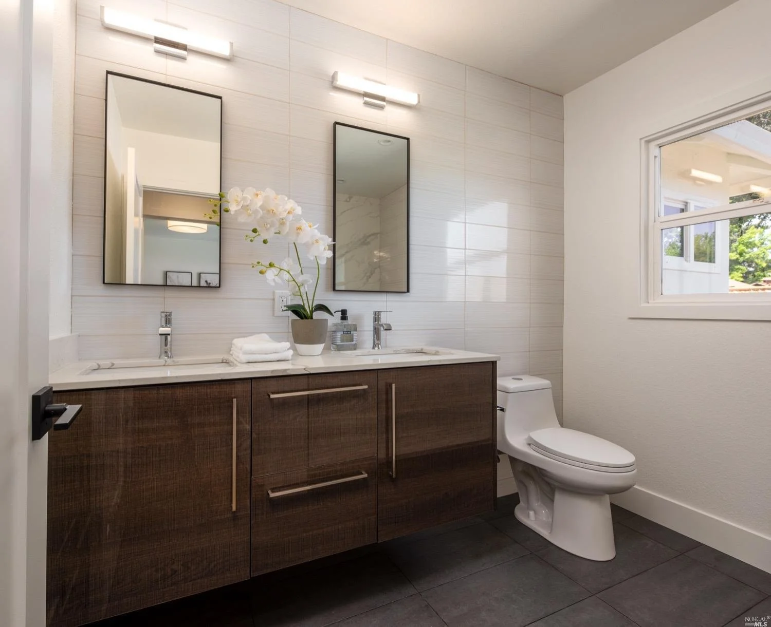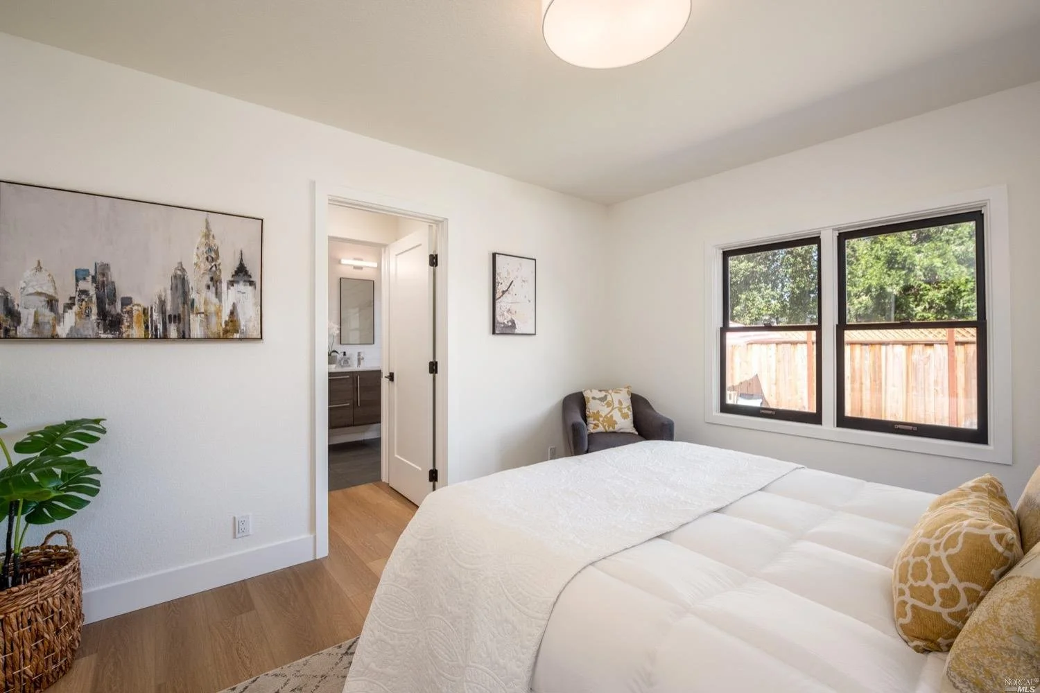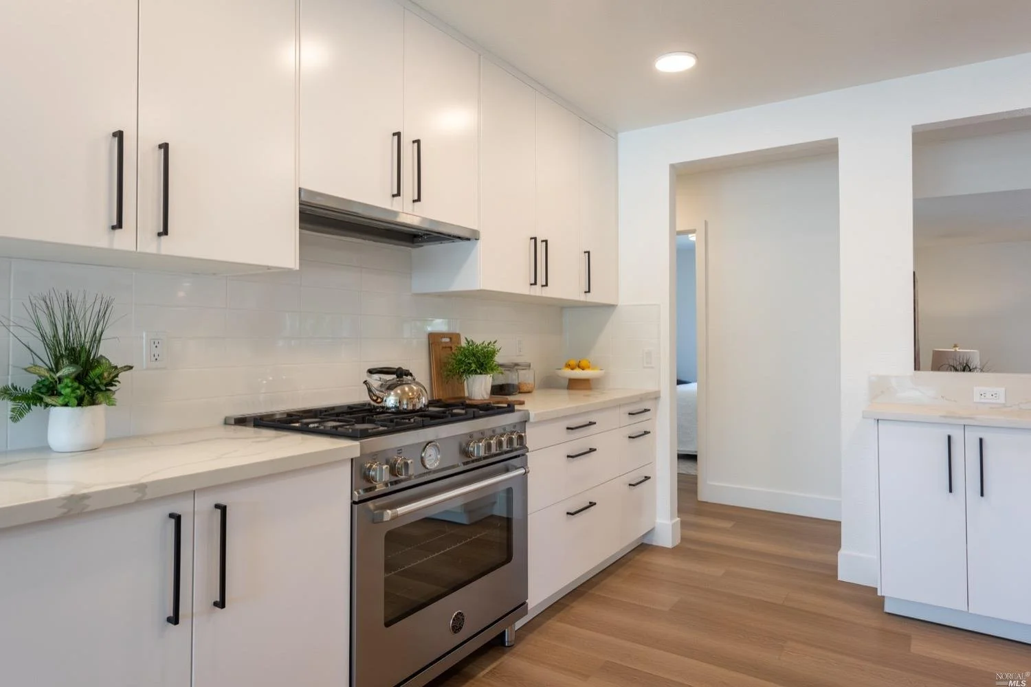 Rare opportunity for stunning, newly remodeled single level home in highly sought-after Proctor Terrace neighborhood. Custom upgrades throughout. Short walk to shops and restaurants with a wonderful school district. Open floor plan with designer kitchen, dining, and large family room with access to spacious private yard with patio are perfect for entertaining. Lovely kitchen boasts quartz countertops, stainless steel appliances, and gas range, with adjacent dining area, built-in cabinetry and pantry/laundry room. Primary bedroom features en suite bath with two sinks, walk-in closet, custom tile, heated floor, and large shower. Additional guest bedroom with en suite bath, heated floor, and shower over tub. Third bedroom/office with exterior entry and convenient separate full guest bath at hall. Attached two car garage with bonus storage closet and more.
