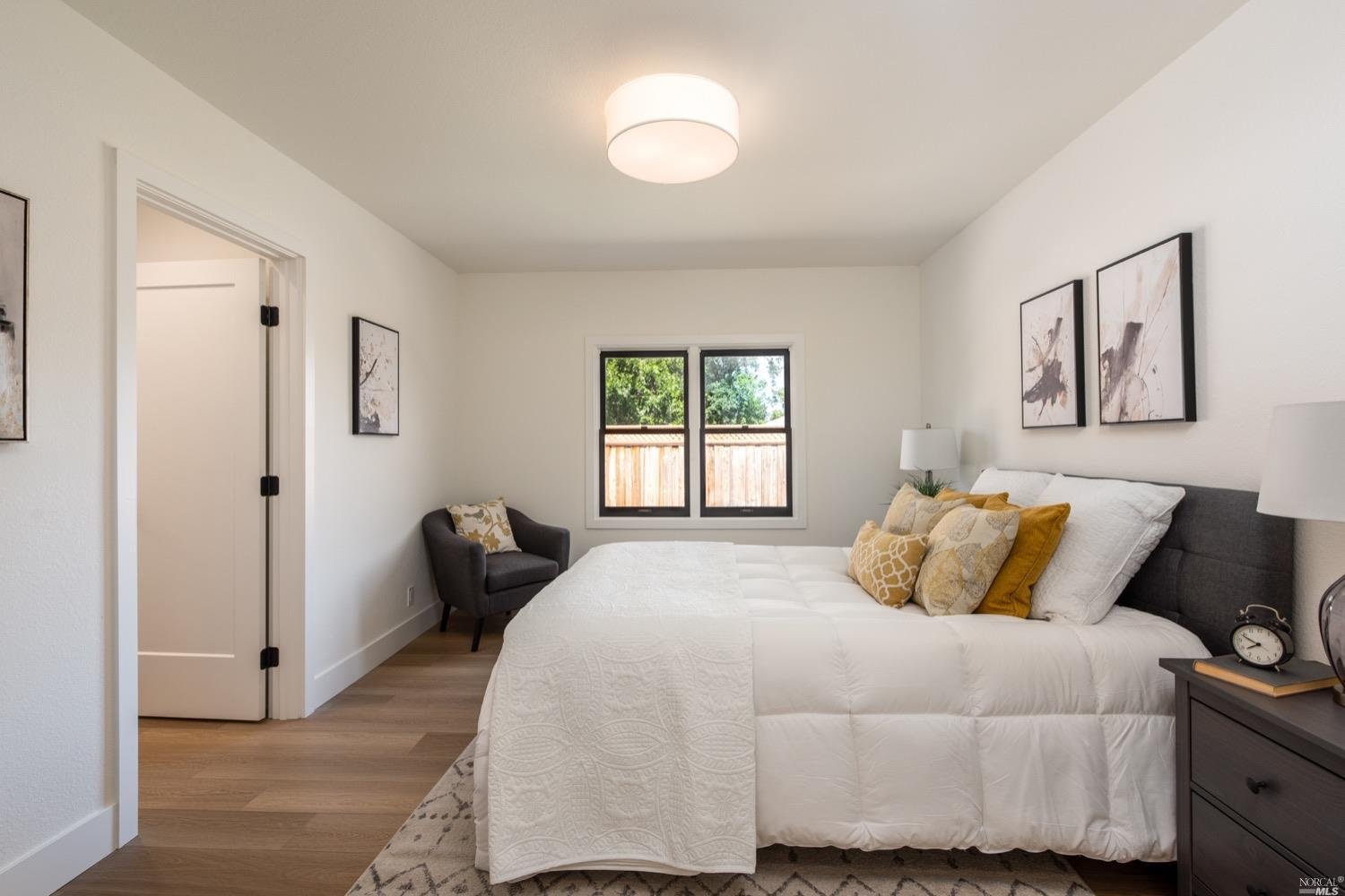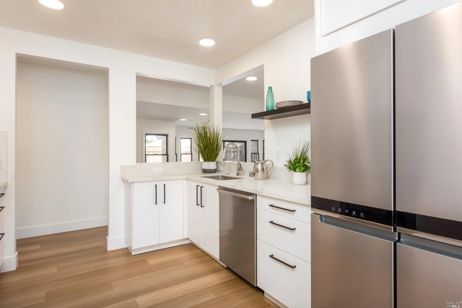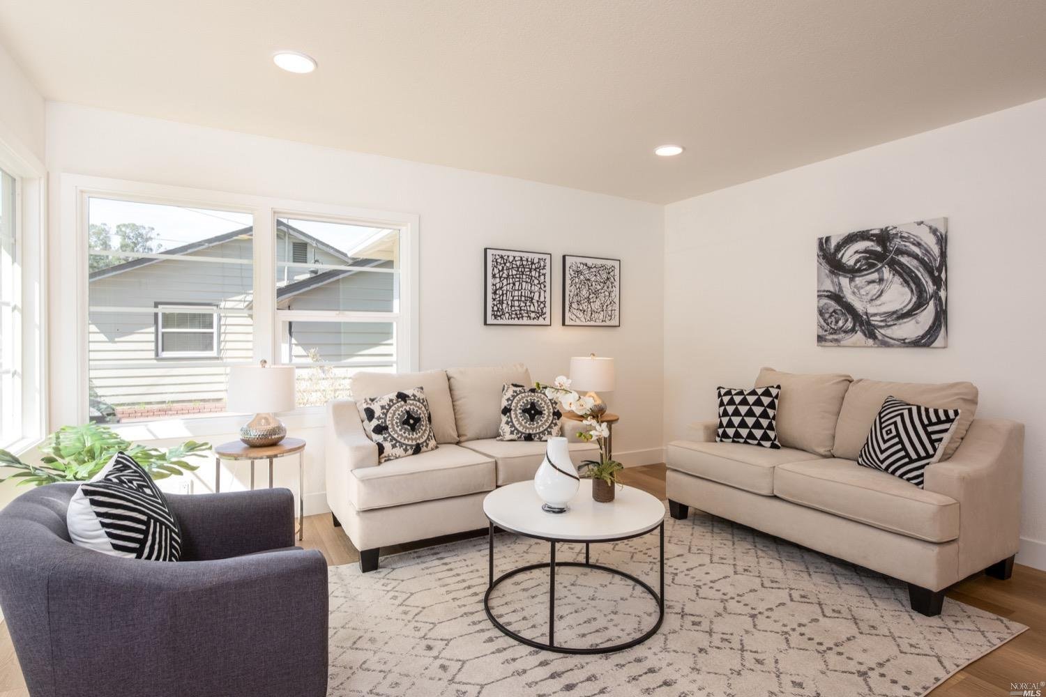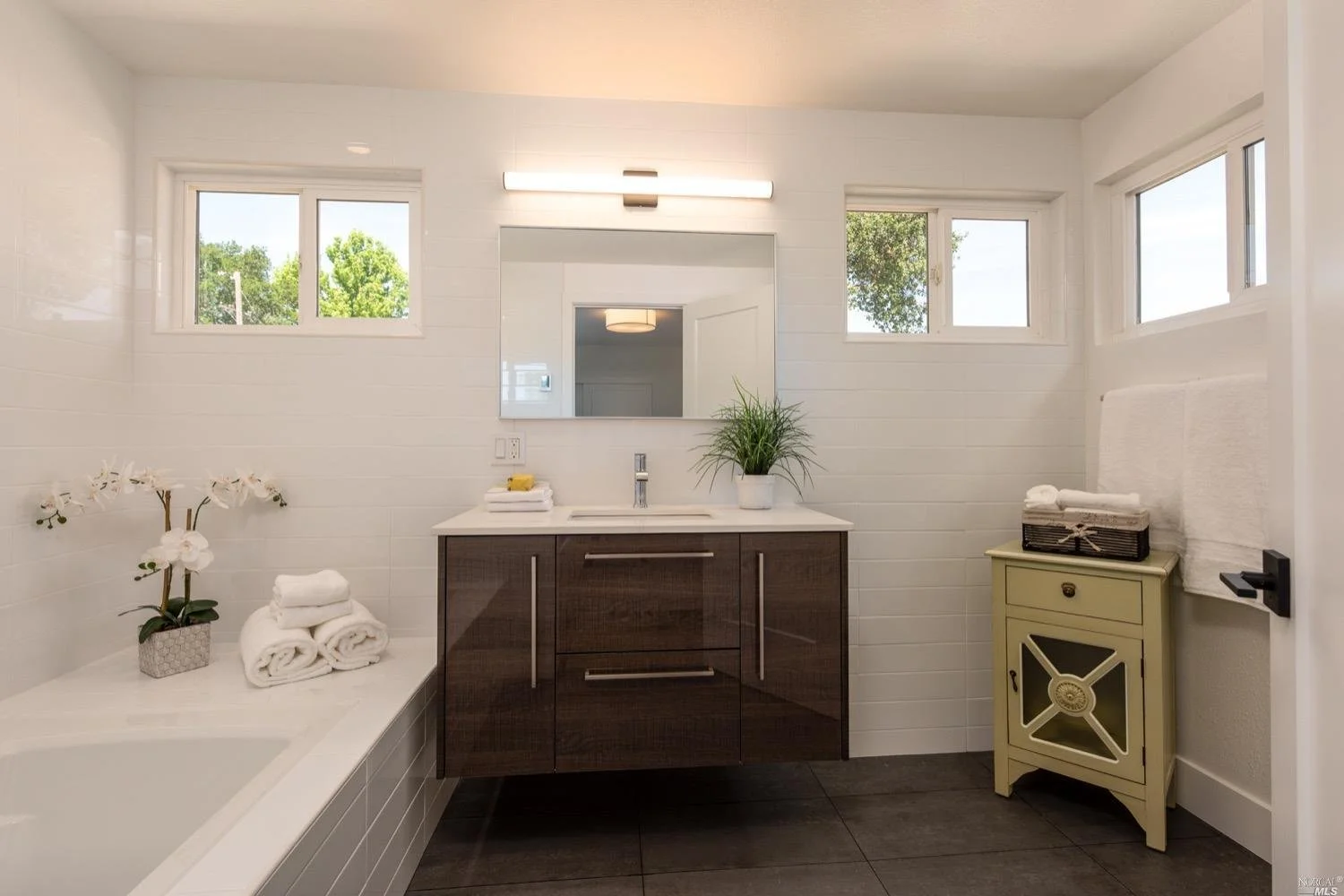Rare opportunity for stunning, newly remodeled single level home in highly sought-after Proctor Terrace neighborhood. Custom upgrades throughout. Short walk to shops and restaurants with a wonderful school district. Open floor plan with designer kitchen, dining, and large family room with access to spacious private yard with patio are perfect for entertaining. Lovely kitchen boasts quartz countertops, stainless steel appliances, and gas range, with adjacent dining area, built-in cabinetry and pantry/laundry room. Primary bedroom features en suite bath with two sinks, walk-in closet, custom tile, heated floor, and large shower. Additional guest bedroom with en suite bath, heated floor, and shower over tub. Third bedroom/office with exterior entry and convenient separate full guest bath at hall. Attached two car garage with bonus storage closet and more.